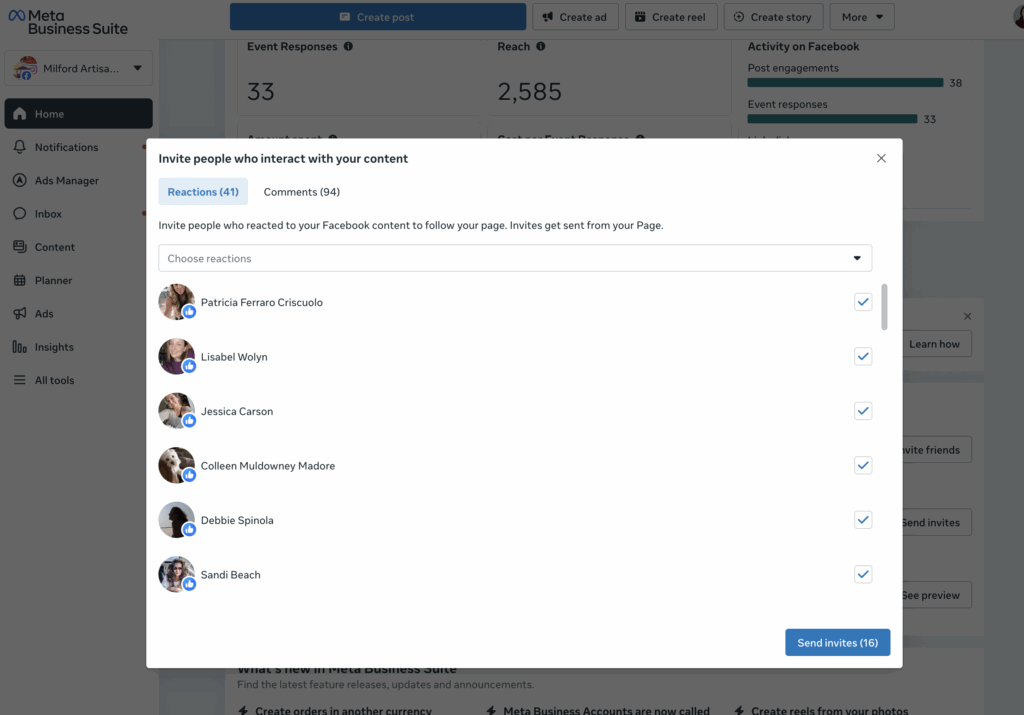 If someone likes or comments on your content, there’s a high chance they’d also follow your page—especially if you remind them with a simple invite. Most business owners don’t realize Facebook lets you send personalized follow invites to people who have already interacted with your posts.